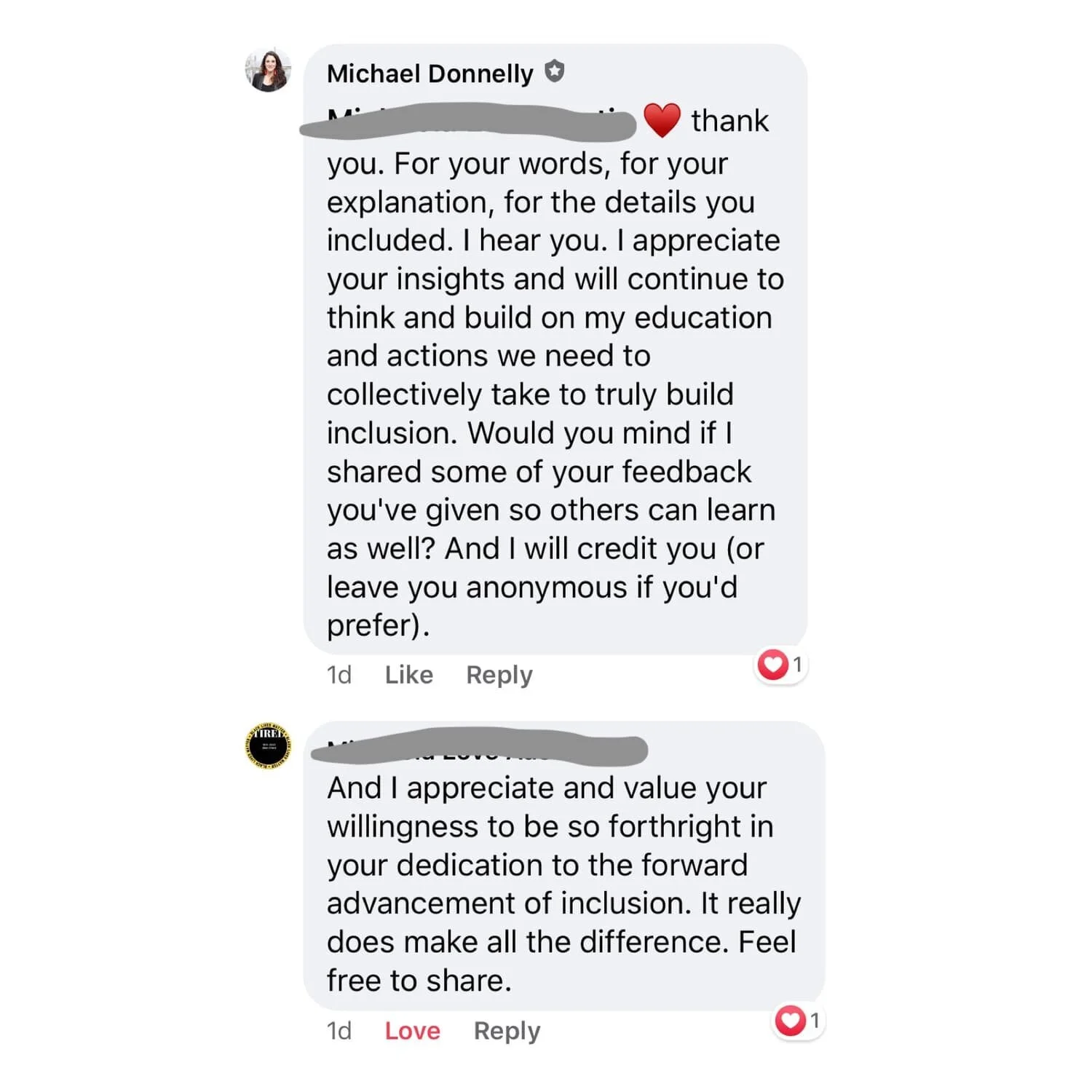 I received a few comments and posts directly on my post about people who felt some appreciation and relief, I also received some more complex feedback and wanted to share so as I’m learning / un-learning — so those who are interested can do so alongside me!